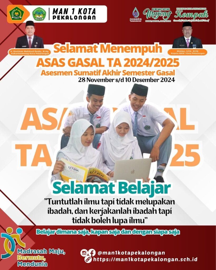 SELAMAT MENEMPUH ASESMEN SUMATIF SEMESTER GASAL 2024 DI MAN 1 KOTA PEKALONGAN