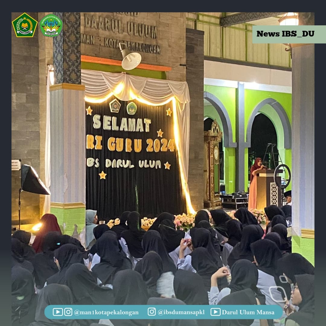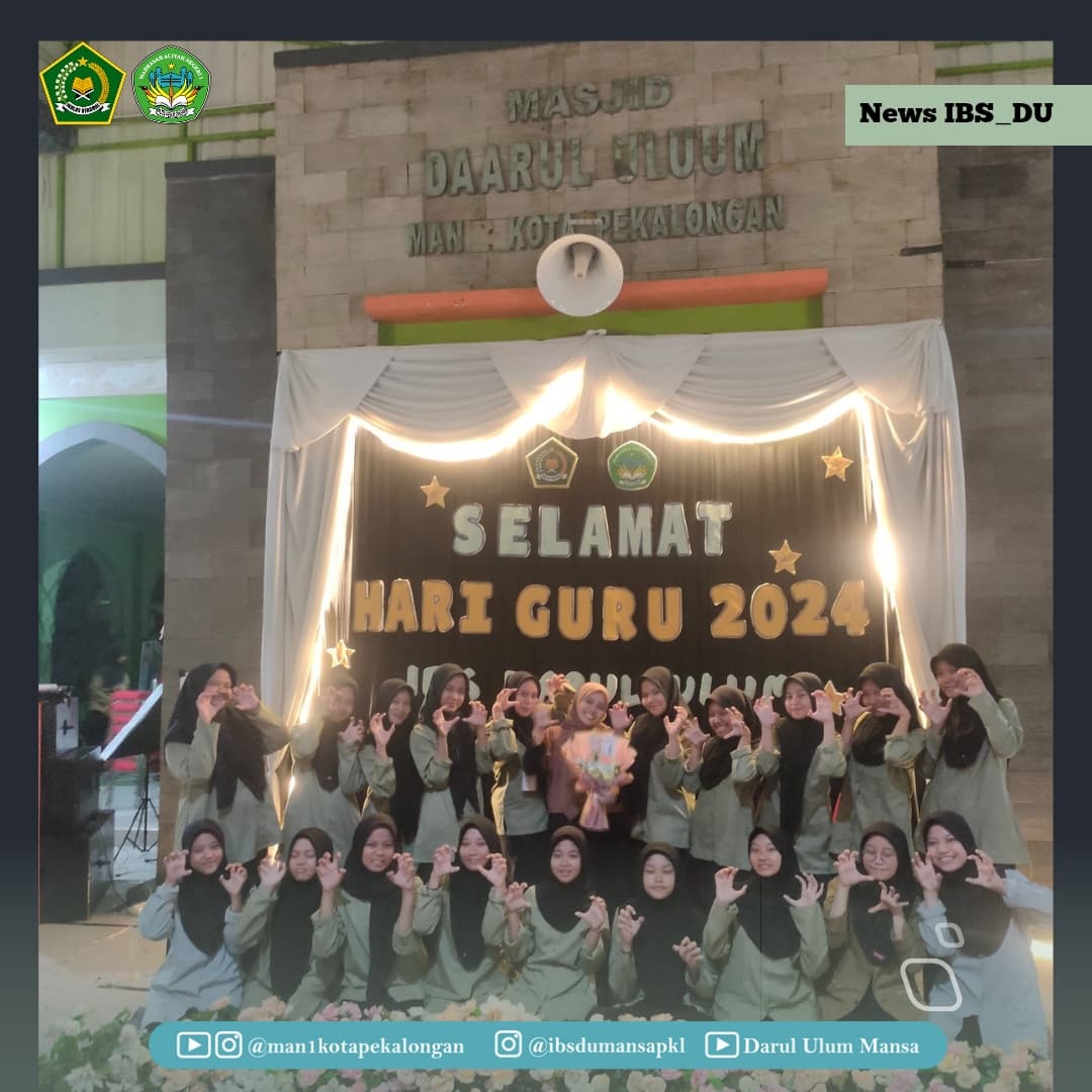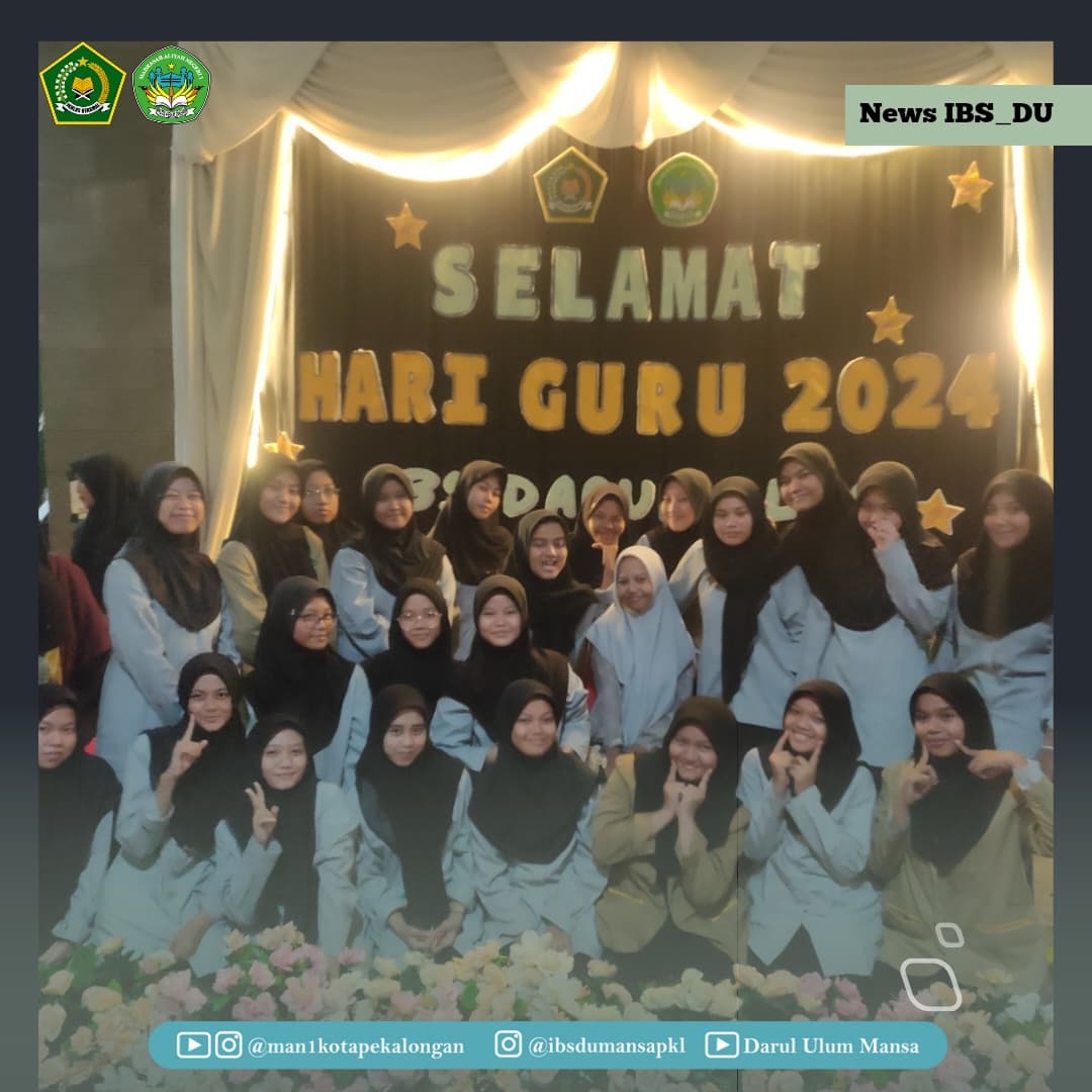 Seluruh santri, Pengurus dan Musyrif Musyrifah IBS Darul Ulum MAN 1 Kota Pekalongan memperingati hari Guru Nasional 2024 sangat antusias walau disertai dengan gemuruh hujan.