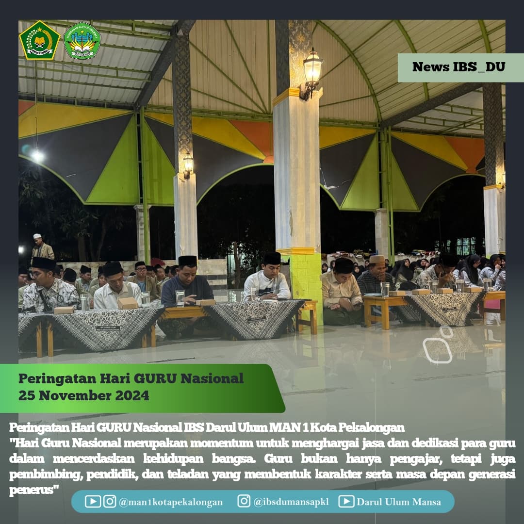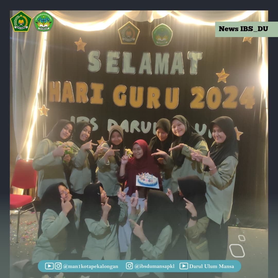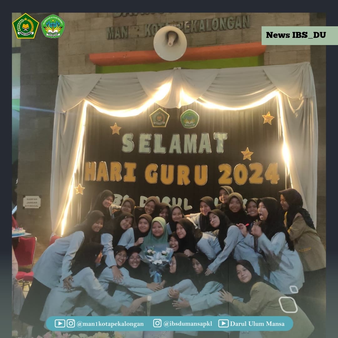 Seluruh santri, Pengurus dan Musyrif Musyrifah IBS Darul Ulum MAN 1 Kota Pekalongan memperingati hari Guru Nasional 2024 sangat antusias walau disertai dengan gemuruh hujan.